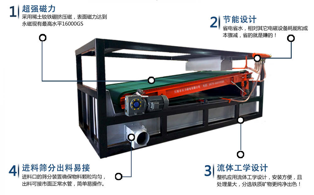 超高磁力 電磁除鐵機(jī)具有比永磁除鐵機(jī)更強(qiáng)的磁力,最高的磁力可以達(dá)到30000GS,是市場(chǎng)上少有的超強(qiáng)磁力設(shè)備。