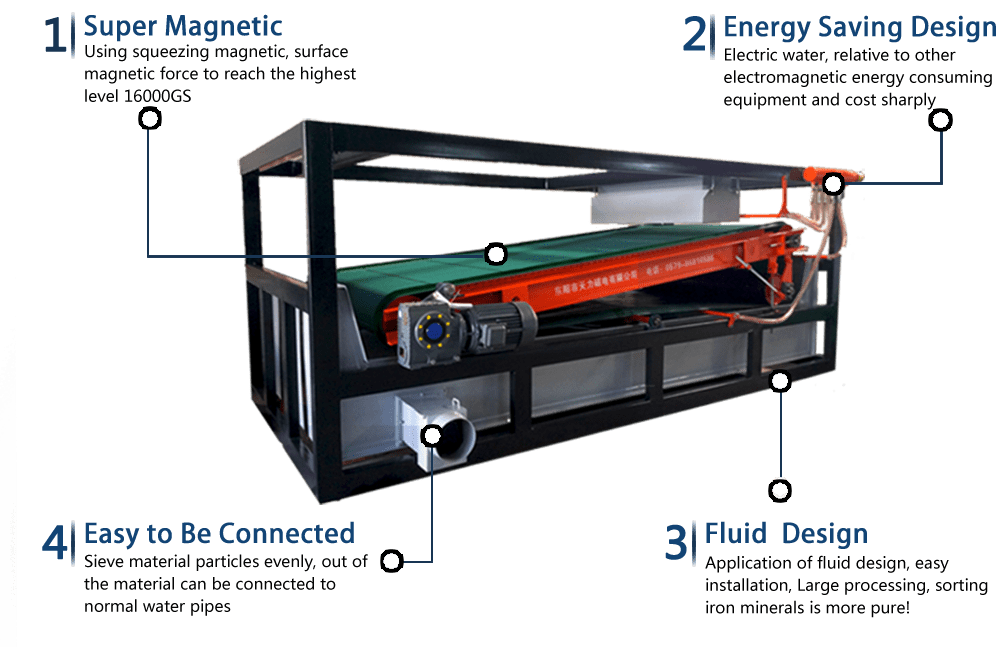 High magnetic The iron removing machine having the highest magnetic force can reach 30000GS.