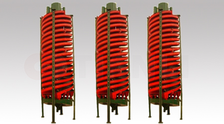 螺旋溜槽由給礦勻分器、給礦槽、螺旋槽、產(chǎn)品截取槽、接礦斗和槽支架六個(gè)部分組成。以煙臺(tái)鑫海螺旋溜槽為例,由螺旋片組成的螺旋槽是主要部件。螺旋片是由玻璃鋼(玻璃纖維增強(qiáng)塑料)制成,借螺栓聯(lián)接在一起。玻璃鋼螺旋片質(zhì)輕而堅(jiān)固。它的選別工作面有一層耐磨層,經(jīng)久耐用。槽的首端設(shè)有多管式給礦勻分器,分礦均勻,控制簡(jiǎn)便。勻分的礦漿通過給礦柑緩慢地給到螺旋槽面上。螺旋槽的尾端裝有閥塊式產(chǎn)品截取槽,將已分選的礦流按品位分成幾種產(chǎn)品。用調(diào)節(jié)閥塊的位置來改變各產(chǎn)品的截取寬度。接礦斗是一同心環(huán)形筒,將已截取的多股礦流按產(chǎn)品分別匯集導(dǎo)出
